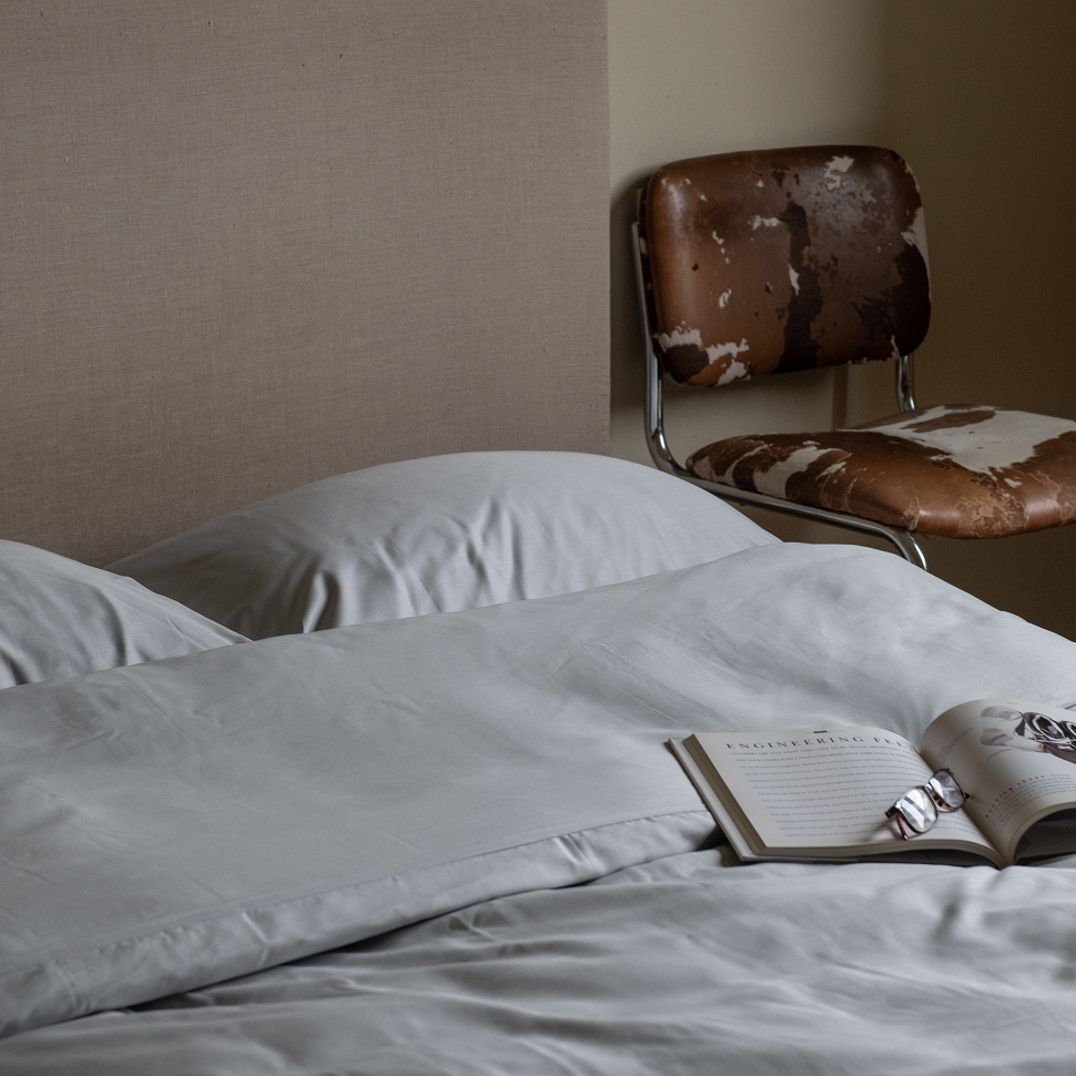 The duvet cover is made of pure cotton sateen.