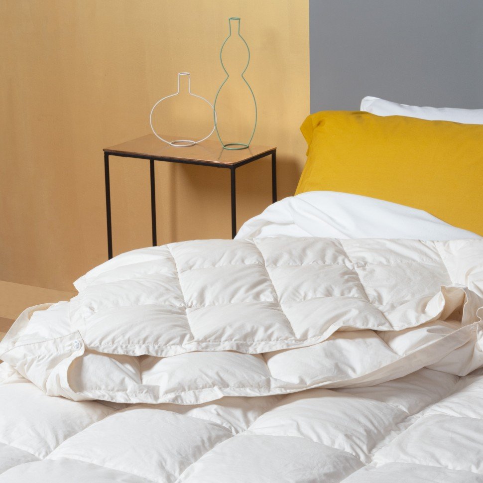 Both duvets are filled with 100% pure goose down cluster, the noblest, softest and with the highest heat coefficient part of the plumage that comes from the chest, belly, hips and underwings of geese.