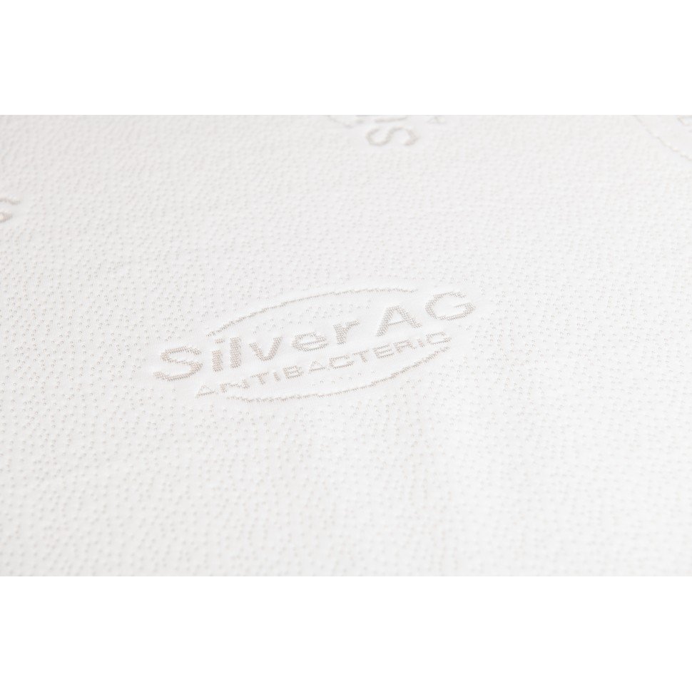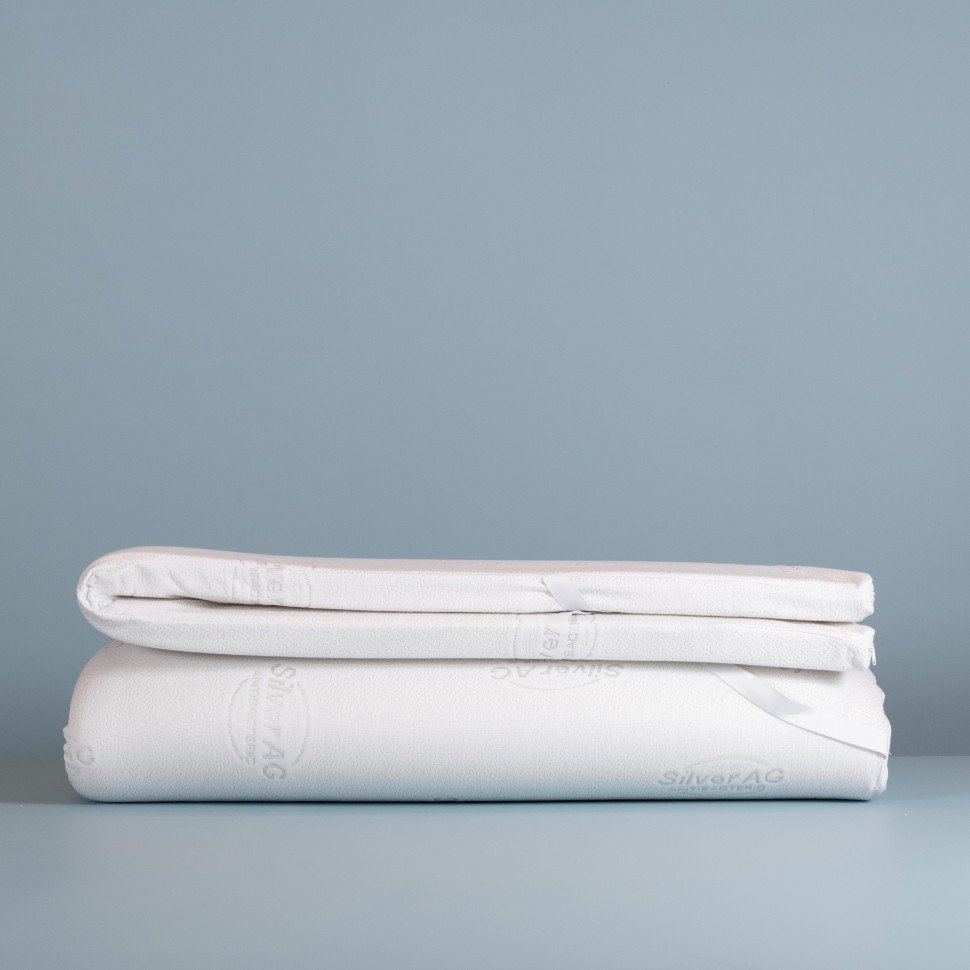 This topper is encased in a polyester fabric cover, a with B-Silver Ag + antibacterial and anti-mite treatment with silver ions: a particular finishing that provides for an infinitesimal quantity of silver to be dispersed within the molecular chains that make up the textile fibers, giving rise to the continuous release of the silver ions that neutralize the development of bad odors and preventing the proliferation of bacteria and dust mites.